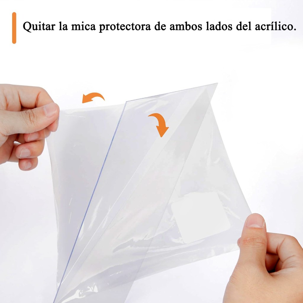 NOTA: QUITAR EL PLÁSTICO QUE CUBRE EL ACRÍLICO DE AMBOS LADOS.