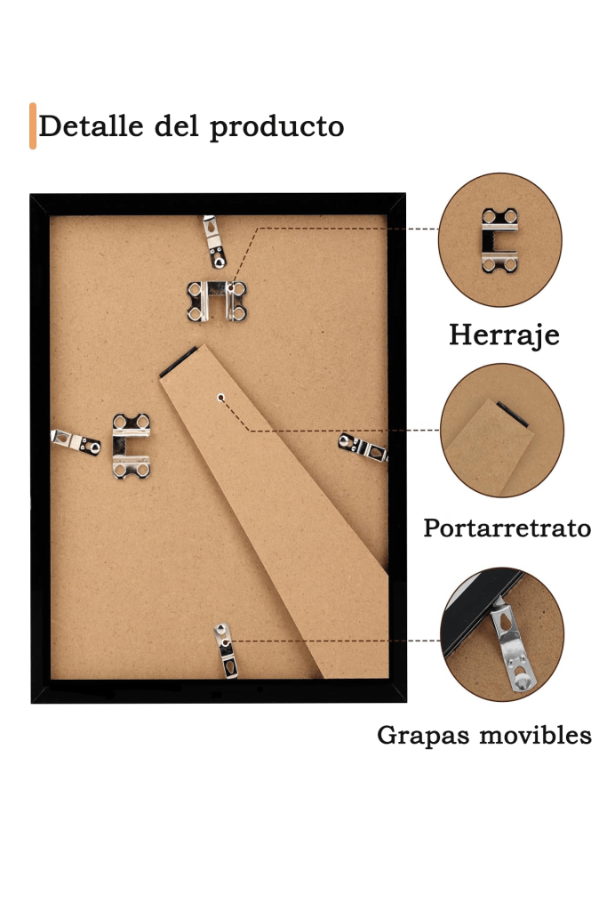 MARCO INDEPENDIENTE, MONTADO EN LA PARED O PARA PORTARRETRATO. Los marcos tamaño CARTA vienen con un herraje para colgar el marco en la pared tanto horizontal como vertical.